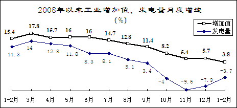 1-2月,全國發(fā)電量4883億千瓦時(shí),同比下降3.7%,去年同期為增長(zhǎng)11.3%。其中,火電下降7.8%,去年同期為增長(zhǎng)10.7%;水電增長(zhǎng)25.5%,增速同比加快15.8個(gè)百分點(diǎn)。2月份,受去年同期低溫雨雪冰凍災(zāi)害使發(fā)電量較低、今年氣溫波動(dòng)較大、抗旱用電增加、春節(jié)等因素綜合影響,發(fā)電量同比增長(zhǎng)5.9%,為2008年10月以來月度首次同比增長(zhǎng)。