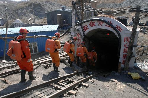 4月6日,搜救隊(duì)員下井搜救被困礦工。