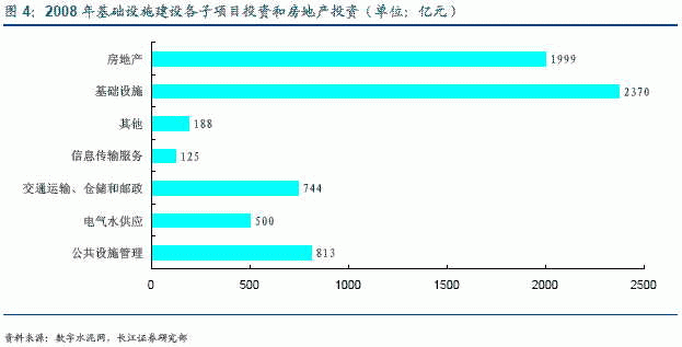 消耗水泥的基建項目份額太少:基建項目中消耗水泥較多的兩項為交通運輸、倉儲和郵政業,水利環境和公共設施管理業,這兩項2008年投資額為1557億元,低于房地產投資1999億元;基建投資向改善民生項目傾斜:由于浙江的交通運輸系統比較完備,近兩年交通運輸、倉儲和郵政業投資增速最低(4.68%);而涉及改善民生的水利環境和公共設施管理投資、衛生設施和合文化藝術以及電信網絡項目等投資增速最快;