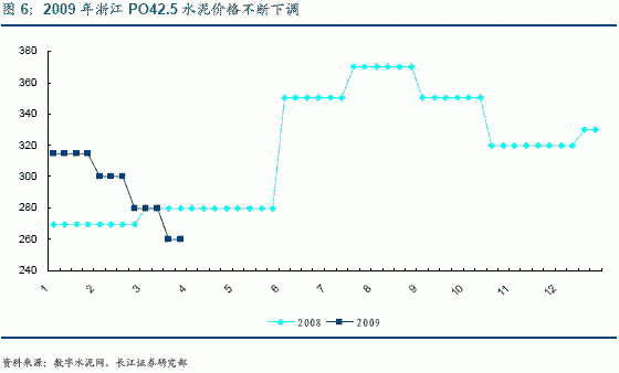 水泥價格目前處于底部,但未來上漲壓力較大2009年3月以來,杭州市高標號水泥價格連續下調4次,目前省內大部分水泥企業都處在盈虧平衡點以下,價格基本上已經達到底部;目前價格停止下調主要是靠企業停產限產實現的,一旦水泥價格上漲,開工率勢必提高抑制價格上漲。