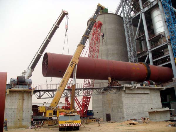 2009年4月2日阿不扎比時間上午8點26分,由蘇州中材ABMC項目部承建的阿聯酋ABMC10000t/d水泥生產線工程的φ6.2*98m回轉窯順利合龍;吊裝及組對總用時56小時,該回轉窯由中國自行設計和制造,是目前世界上最大、最重的回轉窯之一,單機設備總重約2000噸。