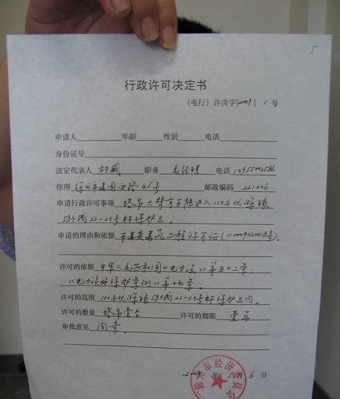 5月6日,安徽省滁州市經委發出第一張電力行政許可決定書。標志著安徽省滁州市在電力設施保護工作邁向法制化、規范化的軌道上,樹立起的一個新的里程碑。