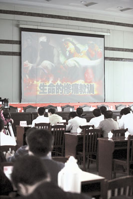 按照國務院安委辦《關于開展“安全生產宣傳教育、安全生產執法、安全生產治理”三項行動》的通知要求,省政府決定在全省開展煤礦重特大事故案例警示教育活動。經省煤炭工業局、省煤監局近3個月的精心準備,選擇了寧武縣賈家堡煤礦接替井“7·2”特大瓦斯爆炸事故、朔州市平魯區白堂鄉細水煤礦 “3·19”特大瓦斯爆炸事故等近年來15起事故案例,在全省進行巡講。