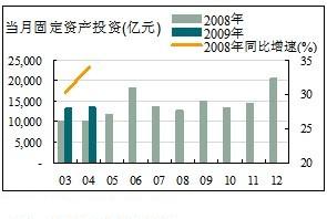 4月份城鎮固定資產投資仍然延續上個月上漲趨勢,當月固定資產投資達到13,520.31億元,同比增長33.96%,較上月再次提高3.65個百分點。