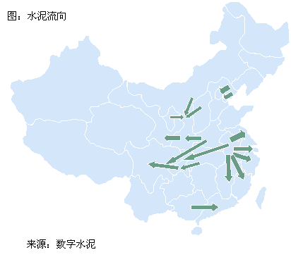從各地調研了解的資料顯示,目前全國市場水泥的流向大致是: