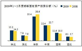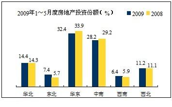 從各地區房地產投資份額情況來看,增長較高的是東北地區從5.7%提高7.4%,華北、西南、西北略有增長,華東、中南與去年同期相比各下降1個百分點。