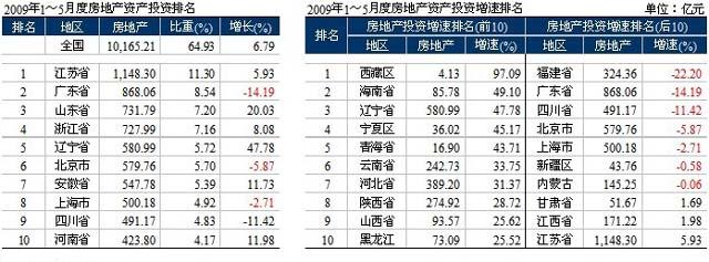 西藏、海南、遼寧、寧夏、青海房地產投資增速在40%以上,福建、廣東、四川、上海、新疆和內蒙古為負增長。