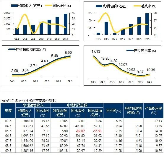 1~5月水泥工業的總體運行情況是:在產量大幅提升的背景下,經濟指標繼續向好,銷售收入、利潤總額同比增長,銷售利潤率,應收賬款周轉率上升,產品積壓率微升的良好局面。但區域分化明顯,主要的利潤增長點在西部地區,而且區域利潤水平表現平平。