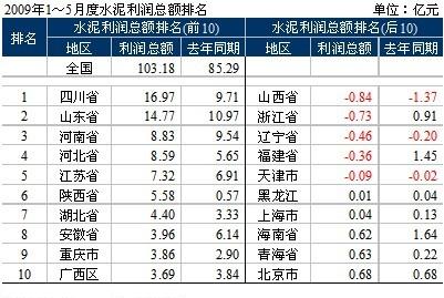 1~5月,全國水泥利潤總額創歷史新高,達到103.18億元,超出2008年同期17.89億元,同比增長20.97%。但我們注意到,利潤同比增長的幅度較上一年有明顯的降低。