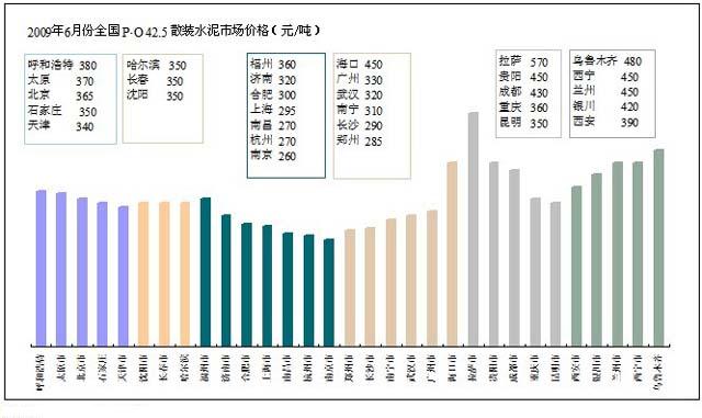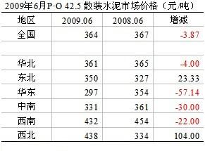 從數字水泥網1~6月全國平均價格跟蹤中可以明顯看到,全國P?O 42.5噸水泥價格364元,略低于去年同期水平,西北和西南地區在400元/噸以上,高出全國平均水平70元/噸。尤其是西北地區同比高出104元/噸,可見利潤之豐厚。但西南地區的價格同比已下降22元/噸,這不僅是近兩個月四川帶頭阻擊外埠水泥入川下調價格所致,也是市場供需狀態的一個反映。