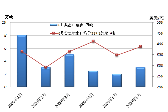 圖1 2009年1-6月焦炭出口數(shù)量及均價走勢圖