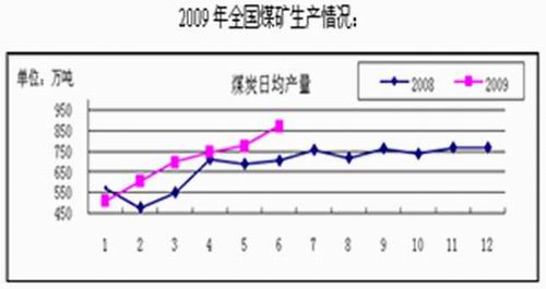 今夏的炎熱好像來的即早又猛,受第二產(chǎn)業(yè)耗電大戶鋼鐵行業(yè)回暖、度夏和節(jié)能減排等影響,7月上旬發(fā)電量同比增長3.0%;日均發(fā)電量達109.98億千瓦時,而直供電廠日均耗煤198.47萬噸,相比去年同期少16萬噸/日左右,比去年最高點(產(chǎn)生于8月)近220萬噸低約20萬噸/日,比最高平均值約低 15萬噸/日;如果今年最大日耗達到去年最高平均水平,到迎風(fēng)度夏最高峰期耗煤相比現(xiàn)在約增加4500萬噸/月,按3個月計算,新增需求總量最多為 1.35億噸。而實際情況是:今年進入度夏期的7月,直供電廠消耗同比偏低16萬噸/日,并且去年日均耗7月比8月才低1萬噸,說明今年8月日耗煤也不會趕上去年同期;更關(guān)鍵的是今年煤炭供應(yīng)充足:09年煤炭產(chǎn)能凈增約1.5億噸,煤炭貿(mào)易逆差將使我國凈增供應(yīng)約6000萬噸,社會庫存相比去年同期高約 5000余萬噸,其中電廠庫存高1300余萬噸。