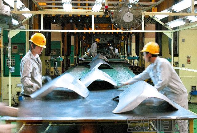 圖為寶鋼工人正在檢查汽車板成型質量