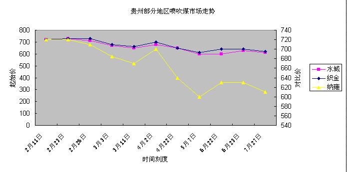 近日從貴州地區了解到,貴州噴吹煤市場略顯寬松,部分地區針對市場需求變化小幅下調噴吹煤價格。