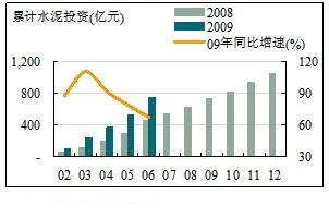 從各省份來看,四川災(zāi)后重建刺激了水泥投資的增長(zhǎng)。1~6月份累計(jì)水泥投資達(dá)到112.46億元,同比增速241.8%(增速排名第六位),占全國(guó)比重上升為25.19%。寧夏、甘肅、重慶、西藏、山西等中西部地區(qū)受中部崛起、西部大開發(fā)等政策的影響,城鎮(zhèn)化建設(shè)、能源開發(fā)步伐加快,投資增速均排名前列。其中,寧夏增速高達(dá)976.3%,居首位;甘肅、重慶分別為485.5%、384.9%,排第二、三位。
