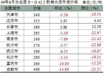 從市場(chǎng)反饋來看,6月份水泥價(jià)格繼續(xù)保持“西高東低”的總體態(tài)勢(shì)。就統(tǒng)計(jì)的31個(gè)主要城市來看,水泥價(jià)格穩(wěn)中有降,與5月份相比,發(fā)生變動(dòng)的主要城市如表所示。