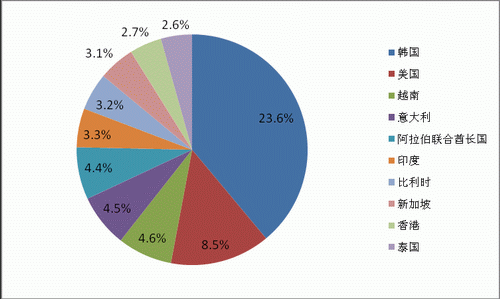 2009年上半年國內(nèi)累計出口鋼材933.4萬噸,其中亞洲地區(qū)出口583.9萬噸,同比下降69.13%,歐盟地區(qū)27國出口66.85萬噸,同比下降77.37%,北美地區(qū)出口89.53萬噸,同比下降55.46%。2008年國內(nèi)鋼材主要出口目的國中,2009年上半年針對韓國出口下降72.75%,對美國出口下降60.25%,對越南出口下降83.87%。