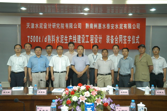 惠水泰安水泥有限公司項目副總經(jīng)理吳家然、電氣部長蔣文獻(xiàn)、裝備部長劉賢義,天津院有限公司副總經(jīng)理王芳協(xié)、黨委副書記陳增福、總經(jīng)理助理何小龍、設(shè)計公司副總經(jīng)理宋立平、公司辦公室副主任李志杰、國內(nèi)業(yè)務(wù)部部長孫建、業(yè)務(wù)主管潘新慶、項目經(jīng)理尹衛(wèi)平等參加了合同簽字儀式。