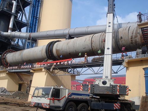 在南京凱盛項(xiàng)目部和棗莊中聯(lián)工程指揮部的共同努力下,終于安全順利地完成了回轉(zhuǎn)窯吊裝任務(wù)。