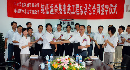 近日,中材萍鄉日產2500噸新型干法熟料生產線配套4.5兆瓦余熱發電項目總承包合同在天津簽訂。