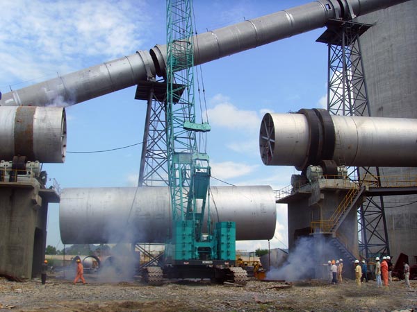 施工過程中,盡管面臨高溫作業、雨季施工等眾多施工難點,項目部始終把保安全、抓質量、搶進度作為工作的重點。在回轉窯吊裝之前,對吊裝方案反復論證,制定出較完善的吊裝方案和安全保障體系以確保施工安全。歷時3天半,實現了回轉窯的順利合龍,贏得了業主的高度贊揚。