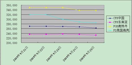 歐洲市場: 西北歐第四季度甲醇合同價格商談在230-250歐元/噸。較第三季度的163歐元/噸,上漲了70-80歐元/噸。合約價格上漲的原因是現(xiàn)貨價格走高。全球經(jīng)濟危機抑制下游需求,生產(chǎn)商削減開工率,國內(nèi)生產(chǎn)量減少,歐洲市場短缺。7月1日的155.5歐元/噸,自2009年第三季度開始,歐洲甲醇價格上漲47%。7月25日現(xiàn)貨價格超過第三季度合同價格,當時成交在170.5歐元/噸。9月7日現(xiàn)貨甲醇價格達到新高,評估在240.5歐元/噸。2009 年下半年預期合同價格強勢。