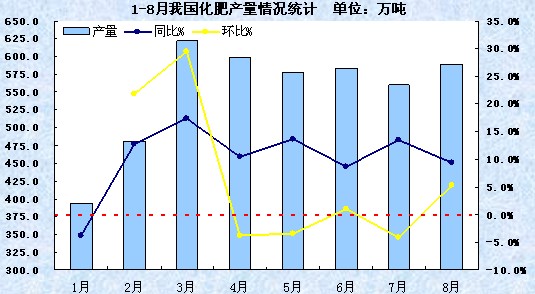 | 1-8月我國化肥產(chǎn)量情況統(tǒng)計 單位:萬噸 | ||||