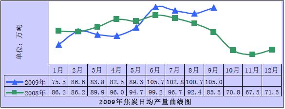 近期,山西焦協發布《關于09 年10 月份有關焦炭市場的指導意見》,要求焦化企業進一步加大限產力度,除有城鎮供氣任務的企業外,所有焦化生產企業10 月份按60~70%的限產幅度安排生產。此外,河北省焦化行業協會也要求焦化企業限產保價,幅度在30%以上,山東焦協曾在8 月底就發出通知,要求企業自9 月5 日起限產30%,焦炭生產大省統一采取限產措施,必將取得較為明顯的“保價”效果,但由于大中型鋼鐵企業焦炭生產保持增長態勢,預計限產行動將持續一段時間,焦炭產量將呈小幅回落的態勢。