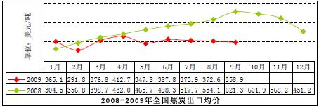 9 月,焦炭市場呈現普跌局面,跌幅不大,焦炭日均產量仍有小幅增長,焦炭出口情況仍不理想,出口均價繼續下跌。