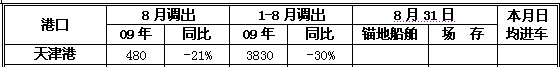 天津港8月份煤炭調(diào)出統(tǒng)計(jì)