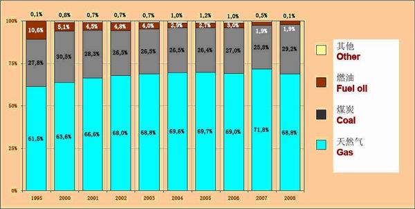在以上發展規劃的指導下,俄羅斯能源結構中各能源所占的比例也將相應改變。