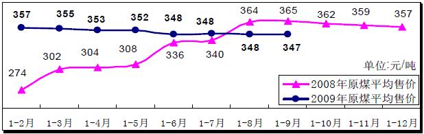 1、大型煤炭企業經濟運行情況:大型煤炭企業經營狀況一般,價格和成本環比基本持平,利潤同比降幅環比擴大,應收賬款同比增幅環比回落,企業虧損面與1-8 月份持平從售價看:1-9 月,原煤平均售價346.9 元/噸,同比減少18.1 元/噸,下降4.95%;比1-8 月減少0.68 元/噸,下降0.2%。原選煤平均售價412 元/噸,同比減少32.8 元/噸,下降7.38%;比1-8 月減少3.68 元/噸,下降1.38%。