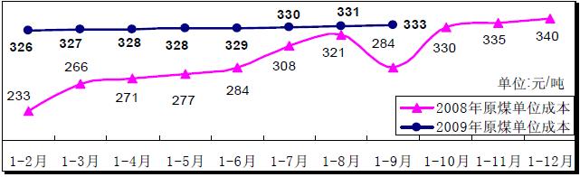 從成本看:據統計, 隨著各類煤炭企業成本費用同比繼續上升,1-9 月,全國大型煤炭企業原煤單位成本332.5 元/噸,同比增加6.62 元/噸,增長2.0%;比1-8 月增加1.31元/噸,增長0.39%。原選煤單位成本379.74 元/噸,同比增加7.85 元/噸,增長2.11%;比1-8 月增加0.63 元/噸,增長0.17%。