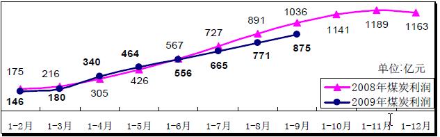 從利潤看:1-9 月,大型煤炭企業實現利潤874.86 億元,同比減少168.81 億元,下降16.2%,降幅比1-8 月擴大2.3 個百分點。其中,前10 家煤炭企業實現利潤683.81 億元,占大型企業利潤的78.16%。