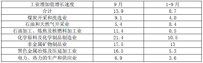 盡管隨著煤炭需求的增加,煤炭開采和洗選業工業增加值增速環比呈現增長態勢。但煤炭開采和洗選業工業增加值和相關行業相比仍然處于偏低水平,并且明顯低于全國平均水平。從前三季度累計工業增加值來看,非金屬礦物制品業、化學原料及化學制品制造業、石油和天然氣開采業和黑色金屬冶煉及壓延加工業等行業工業增加值均明顯高于煤炭行業;電力、熱力的生產和供應業及石油加工、煉焦及核燃料加工業等兩個行業工業增加值低于煤炭行業。