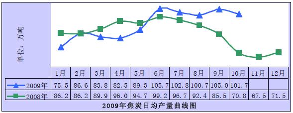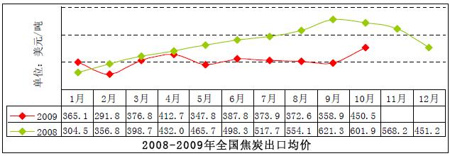 10 月份,國內焦炭市場仍無明顯好轉,日均產量小幅回落,但國際焦炭市場趨好,焦炭出口均價顯著回升,不過出口量基本平穩。今后幾個月,在焦化行業前期集體減產的效果顯現下,市場將有所回暖,但預計還無法將市場下跌的趨勢根本扭轉,近期仍有新增產能投產,存在虧損生產企業,焦炭市場實現真正止跌,必須更大的限產幅度。