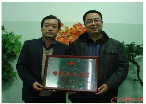近日,澄合王村煤礦綜二隊榮獲陜西煤業化工集團公司工會“模范職工小家”光榮稱號。圖為該礦綜二隊支部書記華春潮(左)、隊長薛小勇(右)手捧獎牌留影情景。