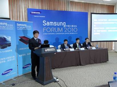 中國論壇,北京 - 2010年4月7日 –作為三星電子旗下重要戰略品牌之一的三星商用,于4月7日舉辦的中國三星論壇上舉辦了專場媒體會,媒體會在主持人“三星商用公關總監吳小聰”的開場介紹中揭幕,三星電子中國商用事業部部長安風善進行了致辭,三星電子中國商用事業部高級總監呼東風就2010年三星商用產品及發展戰略進行了介紹,商用大屏顯示器、商用筆記本電腦、商用電視的產品經理現場與眾多媒體進行了溝通,并就各產品2010年產品、渠道、行業規劃與戰略進行了介紹。