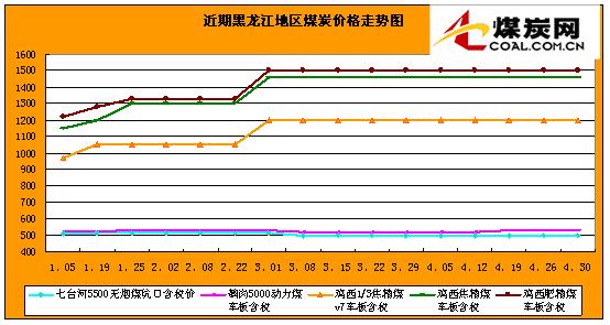 【黑龍江】黑龍江1/3焦精煤現出廠含稅價1200-1250元 /噸,主焦精煤、肥煤車板為1470元/噸、1510元/噸。黑龍江雞西、鶴崗和雙鴨山4500大卡動力煤車板含稅價450元 /噸,5000-5200大卡動力煤車板含稅價540元/噸相比上周上漲10元,七臺河5500大卡無煙混煤坑口價505元/噸相比上周上漲5元,鶴崗5000大卡無煙煤車板價530元/噸,6000大卡動力塊煤車板價675元/噸,氣煤坑口價735元/噸;雙鴨山氣精煤車板價950元/噸,5500大卡長焰煤坑口價475元/噸相比上周上漲15元。其余煤價保持穩定。