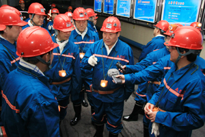 5月18日下午,國家安全監管總局副局長、國家煤礦安全監察局局長趙鐵錘及山西省副省長陳川平一行深入潞安礦業集團常村煤礦井下考察安全避險系統建設工作。