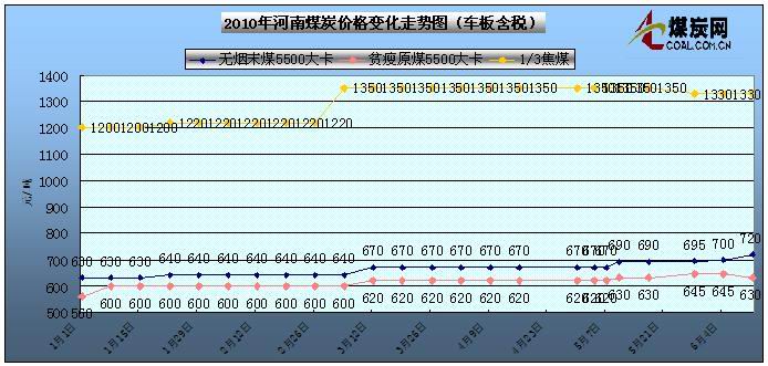 | 河南焦作 | 無煙原煤 | 5600大卡,硫≤0.8%,揮發分≤7% | 700-750 | - | 車板含稅 | |