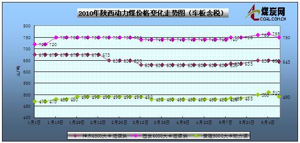 | 黃陵 | 動力煤 | 5000 | 32 | 26-32 | 0.5 | 490 | 車板價 | ||