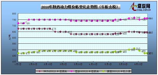 6月25日陜西地區煤炭參考價格
