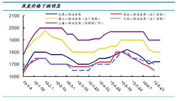 華北地區:近期鋼材市場價格繼續小幅回落,鋼廠對焦炭、礦石等原料價格繼續打壓,限量采購,山西、河北地區焦炭市場價格小幅回落50元左右,據悉,鋼廠情況每況愈下,鋼坯市場價格起伏不定,但鋼廠繼續保持限產40%-50%,部分鋼廠甚至準備停產,采購基本停滯導致焦化廠庫存居高,不斷加大限產力度,幅度達50%左右,而焦炭市場價格也因下游需求的減弱出貨甚少,現山西地區二級冶金焦含稅出廠價在1700元左右;河北二級冶金焦1650-1680元,報價較為混亂。后期華北焦炭市場將會以盤整態勢為主,焦化企業仍會大幅限產。
