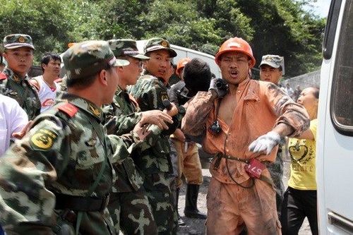 8月3日,在貴州仁懷市長崗鎮明陽煤礦,一名礦難遇難者遺體被抬出風井。