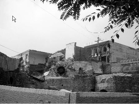 站在圍墻外亂石堆上向里張望,能看到房屋倒塌,鋼筋橫飛,以及那個曾被瓦斯爆炸熱浪掀上天又落到離原地四五米遠(yuǎn)的碩大鼓風(fēng)機(jī)。