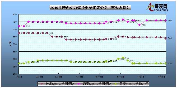 | 黃陵 | 動力煤 | 5000 | 32 | 26-32 | 0.5 | 470 | 車板價 | ||