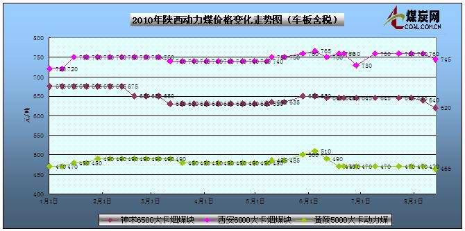 本周陜西煤炭市場價格小幅下降,由于近期港口煤炭價格小幅回落,西北地區坑口價仍繼續維穩,由于仍處在迎峰度夏關鍵期,成交還好。該地區受市場波動不大,主要是西北地處偏僻,主要以地銷為主。陜西神木礦區6000大卡煙煤末車板含稅價下跌15元/噸至465元/噸;神木38塊Q6500以上西安貨場不含稅價715元/噸。
