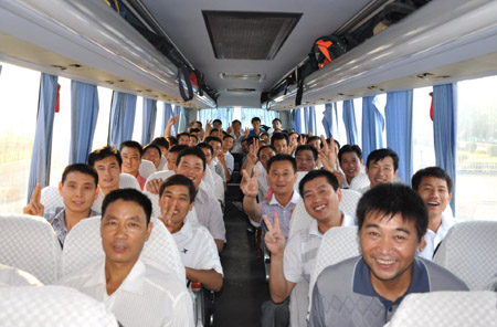 國投新集二礦在企業管理中,注重以人為本,以職工的利益為出發點,全方位的創造良好的外部條件,來切實維護職工權益,關注職工的身心健康。針對夏季高溫時節,組織生產一線職工到連云港、青島等地集體休養,使廣大職工充分感受到企業的關懷。圖為整裝待發的外出休養職工。