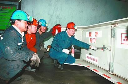 11月2日,塔山煤礦安全培訓中心工作人員(右一)向井下員工講解救生艙使用方法。近日,國內首臺礦用軟體救生艙在山西省大同煤礦集團公司塔山煤礦入井試用。這種軟體救生艙可以同時容納10到35人緊急避難,并且能夠在3分鐘之內完全展開,在不需要外部能源的基礎上,提供96小時基本生存保障,使被困礦工贏得較長的生存時間。